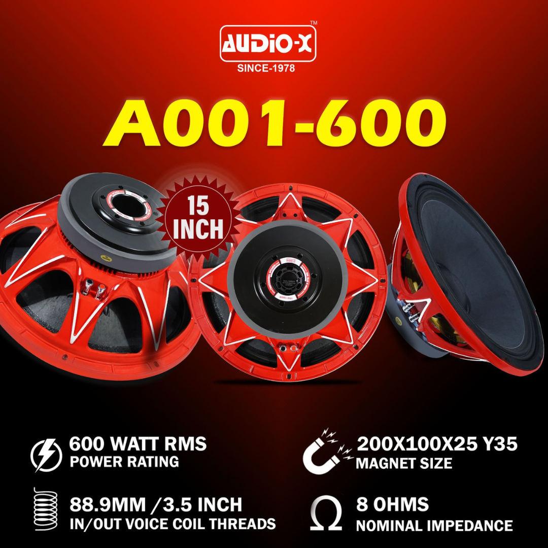 Experience powerful, clear, and reliable sound performance with the Audio-X 15″ A001-600. Built for DJs, stage events, PA systems, and professional audio setups, this high-quality 15-inch speaker delivers strong bass, crisp mids, and excellent durability—making it a perfect choice for any sound system upgrade.