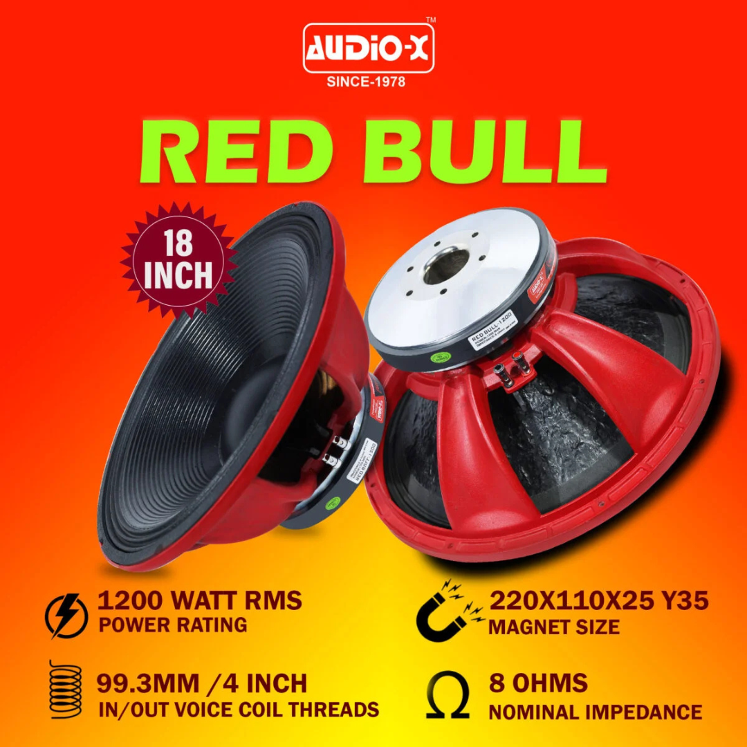 Audio-X 18″ RED BULL-1200 – Extreme Power. Extreme Clarity.